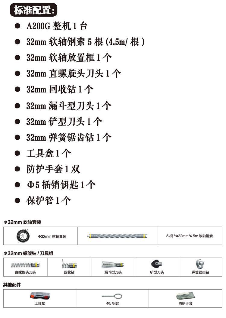 32mm軟軸的疏通范圍:φ75-φ200mm